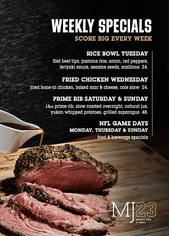 MJ23 is serving up contemporary American cuisine, with a sports-viewing experience that Michael himself can be proud of. Stop in for a quick beer and wings or get cozy with our wide range of reinvented bar food classics, fresh salads, and Michael Jordan’s personal favorites.